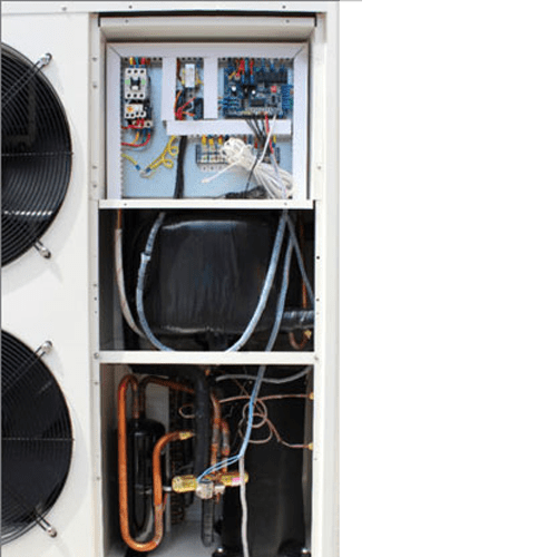 Kondenzator v toplotni črpalki služi kot pomemben sestavni del za izmenjavo toplote, ustvarjene s segrevanjem v toplotni črpalki. Pridobljena toplota se prenaša na ogrevalni sistem. Toplotna črpalka uporablja novo tehnologijo, razvito v ZDA, ki ima boljši izmenjevalni učinek kot običajni izmenjevalci toplote. Vgrajena je koaksialni spiralni kondenzator, ki zagotavlja boljši prenos toplote z zelo majhno velikostjo. Izmenjevalec toplote ima zelo dolgo življenjsko dobo.
